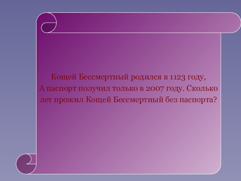 Слайд 25Кощей Бессмертный родился в 1123 году,