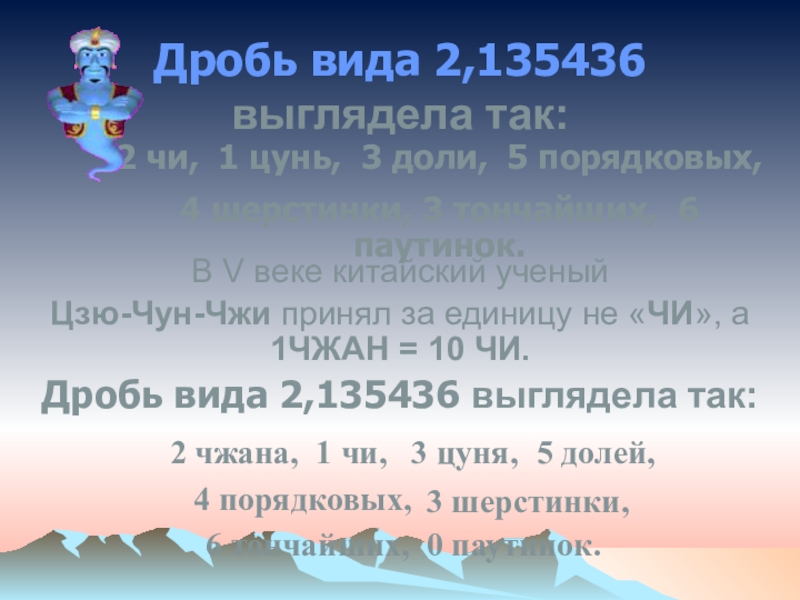 2 135436 - дробная часть подчеркивалась и записывалась выше строки целой части числа.