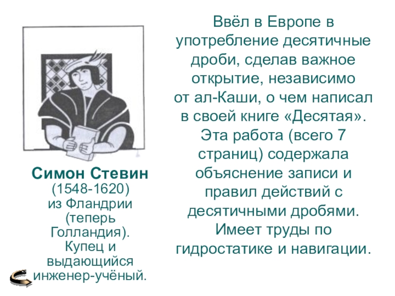из Фландрии. В своей книге "Десятая" (1585г.)