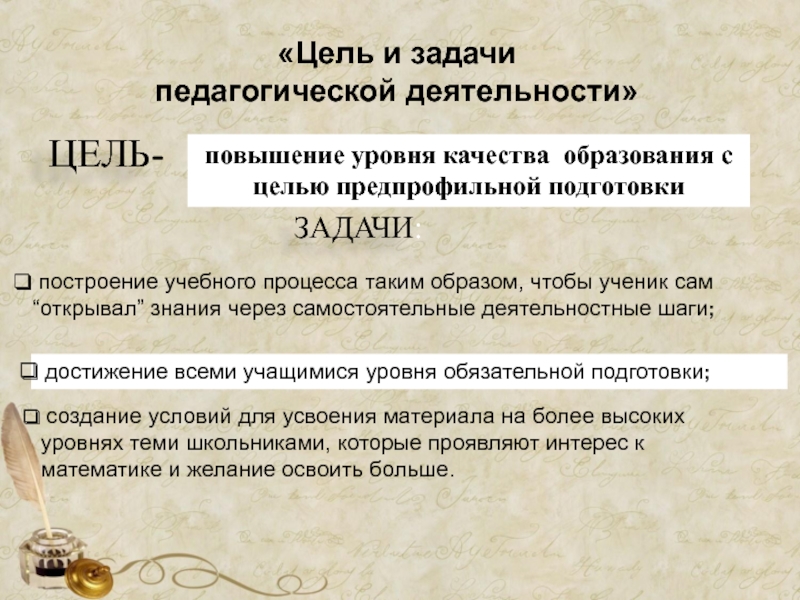 создание условий для усвоения материала на более высоких уровнях теми школьниками, которые проявляют интерес к математике и желание освоить больше.