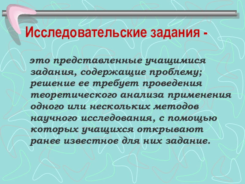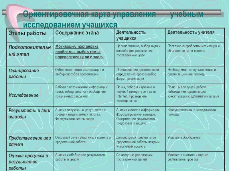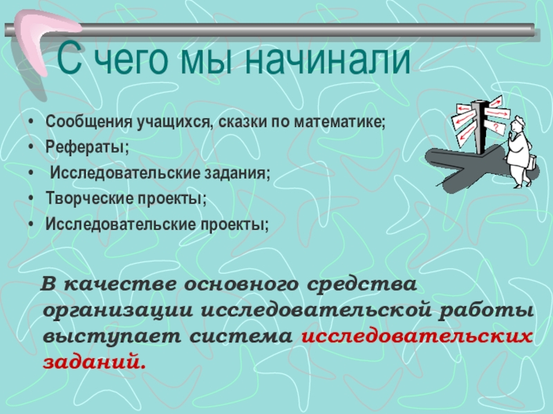 В качестве основного средства организации исследовательской работы выступает система исследовательских заданий.