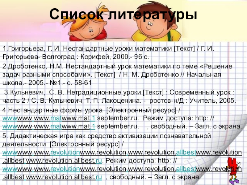 Это сайт презентаций, где можно хранить и обмениваться своими презентациями, докладами, проектами, шаблонами в формате PowerPoint с другими пользователями. Мы помогаем школьникам, студентам, учителям, преподавателям хранить и обмениваться учебными материалами.