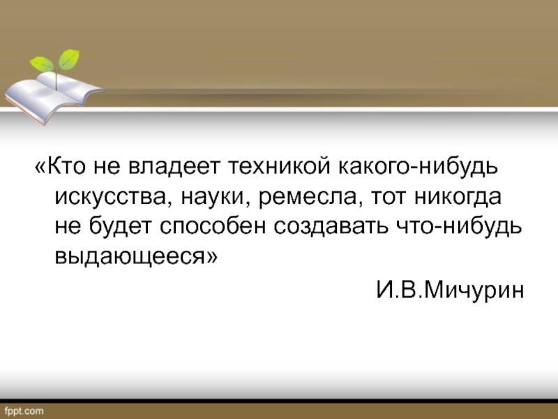 «Кто не владеет техникой какого-нибудь искусства, науки, ремесла, тот никогда не