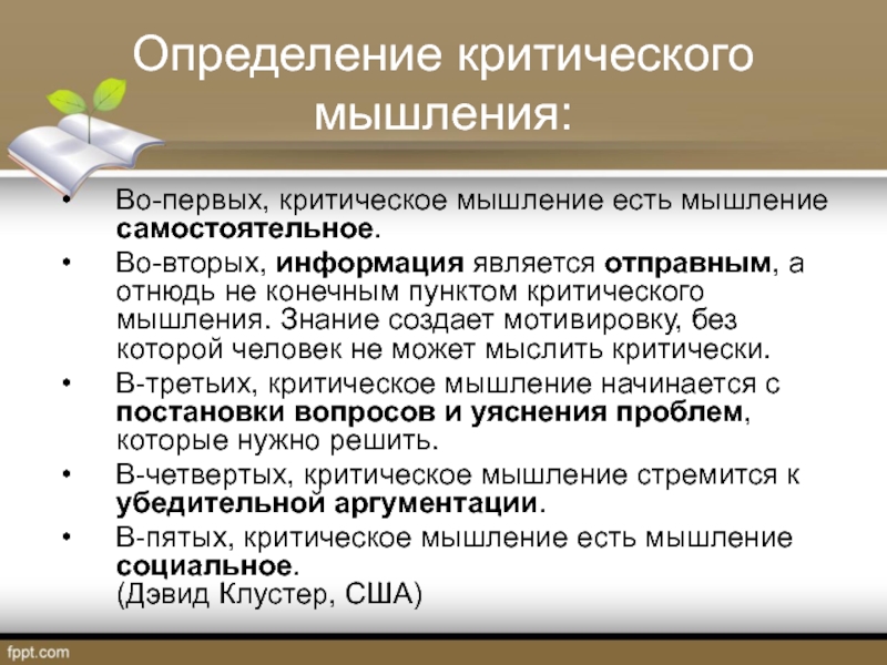 Во-первых, критическое мышление есть мышление самостоятельное.