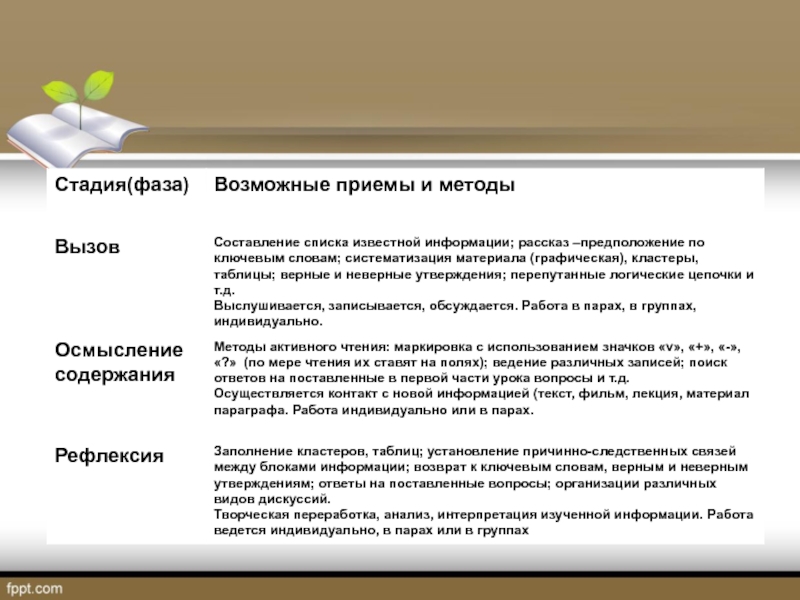 учителем активно работают, сознательно размышляют над процессом обучения, отслеживают, подтверждают, опровергают или расширяют знания, новые идеи, чувства или мнения об окружающем мире.