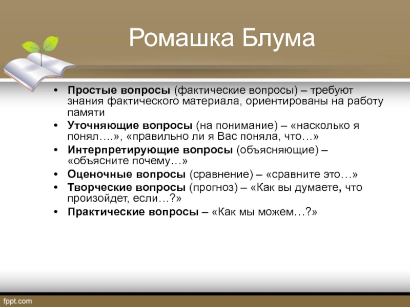 Простые вопросы (фактические вопросы) – требуют знания фактического материала, ориентированы