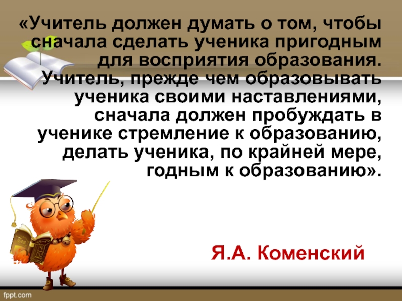 Слайд 2«Учитель должен думать о том, чтобы сначала сделать ученика пригодным для