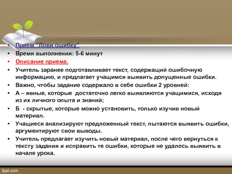 ошибочную информацию, и предлагает учащимся выявить допущенные ошибки.
