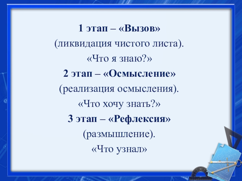 Творчество. Идеи. Построение алгоритма. Первичное понимание и закрепление.