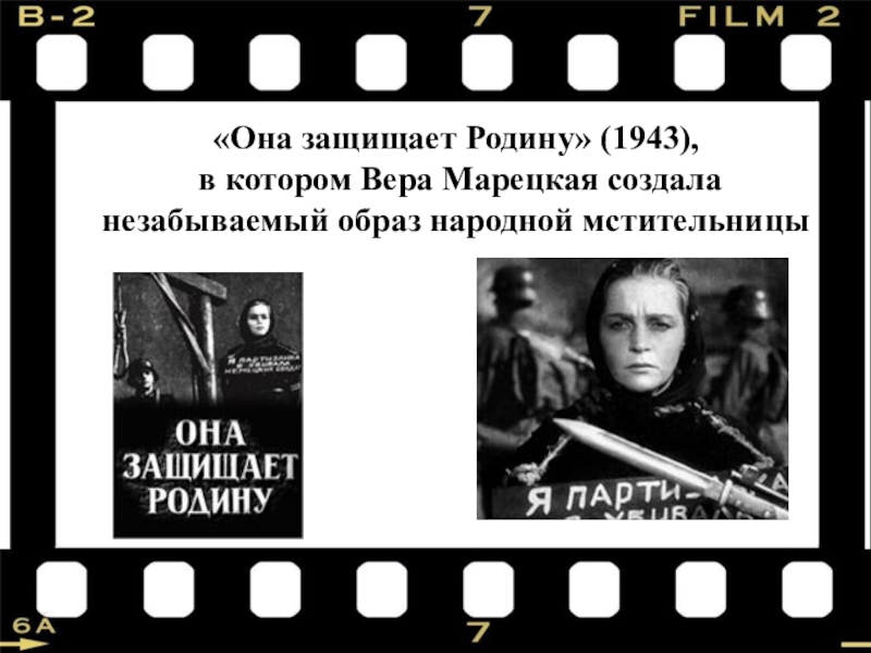 «Она защищает Родину» (1943), в котором Вера Марецкая создала незабываемый образ народной мстительницы