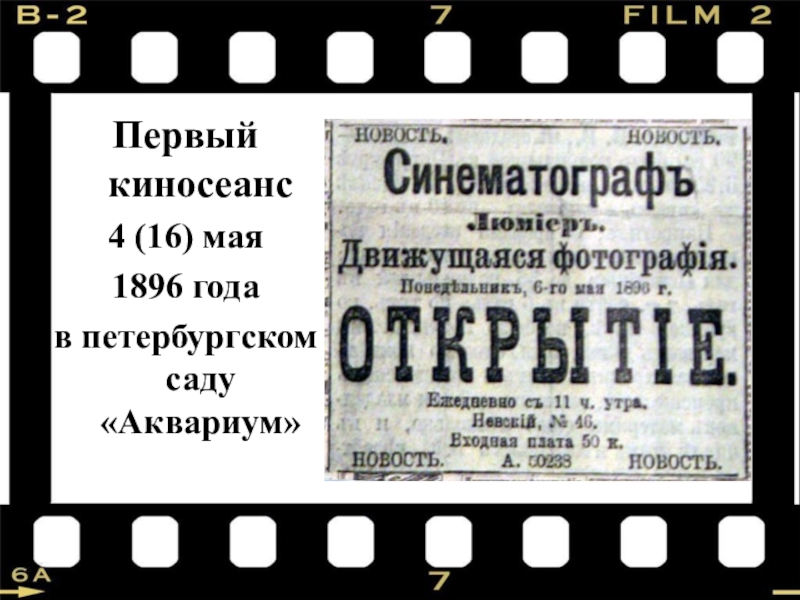 Первый киносеанс4 (16) мая1896 года в петербургском саду «Аквариум»