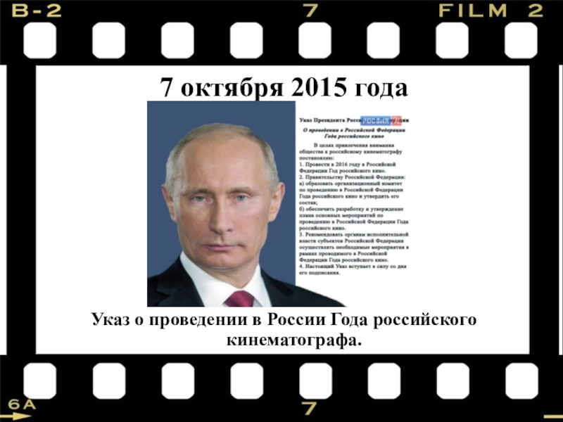 7 октября 2015 года Указ о проведении в России Года российского кинематографа.