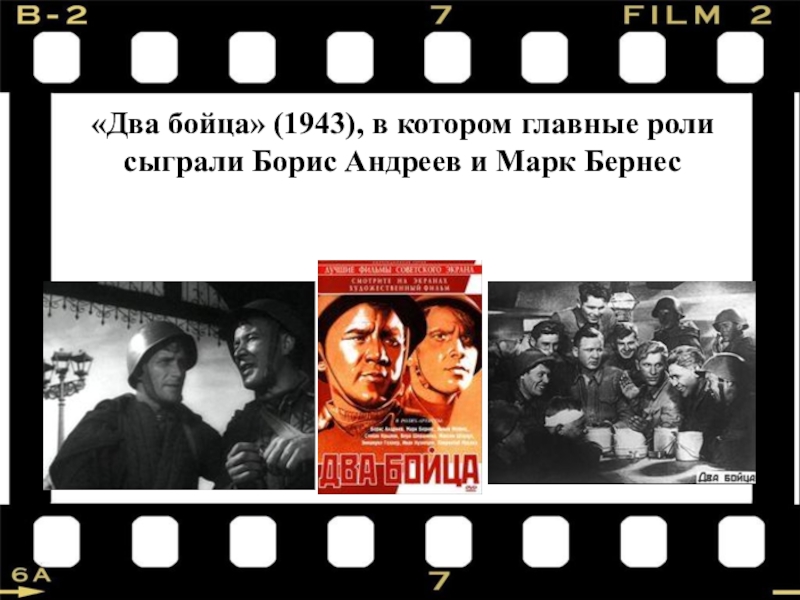 Слайд 28«Два бойца» (1943), в котором главные роли сыграли Борис Андреев и