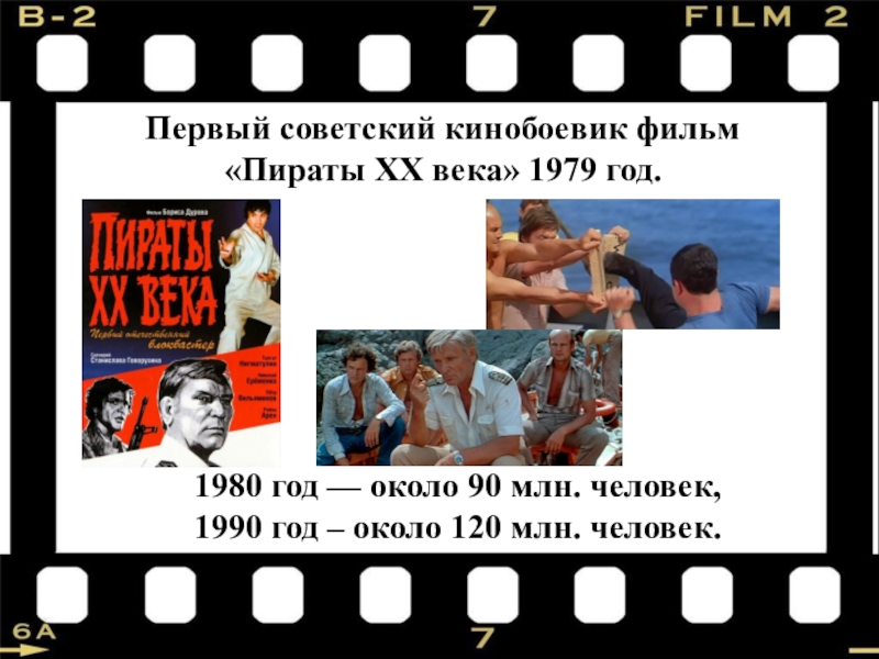 Первый советский кинобоевик фильм «Пираты XX века» 1979 год. 1980 год — около 90 млн. человек,1990 год