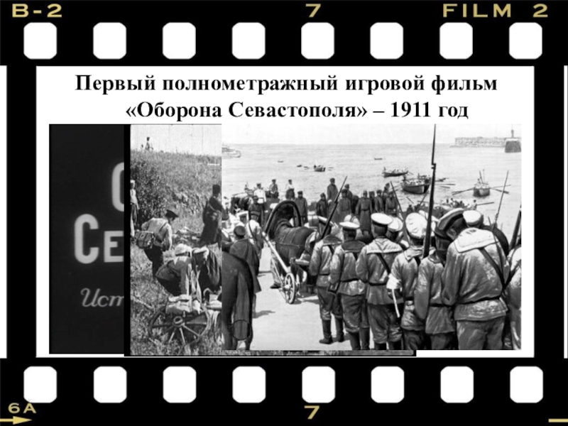 Слайд 9Первый полнометражный игровой фильм «Оборона Севастополя» – 1911 год