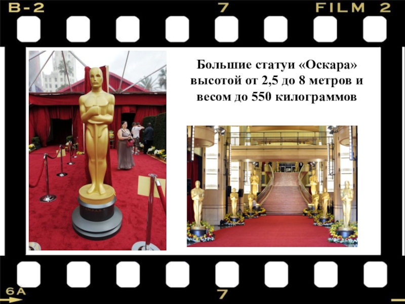 Слайд 44Большие статуи «Оскара» высотой от 2,5 до 8 метров и весом