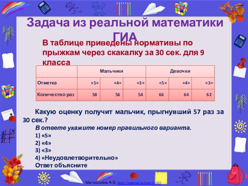 Какую оценку получит мальчик, прыгнувший 57 раз за 30 сек.?
