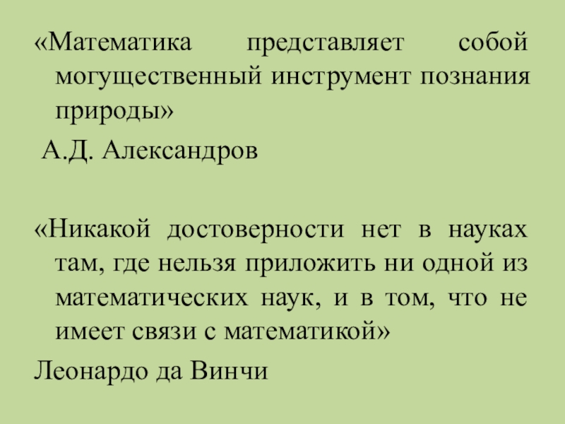 нет в науках там, где нельзя приложить ни одной из математических наук, и в том, что не имеет связи с математикой»