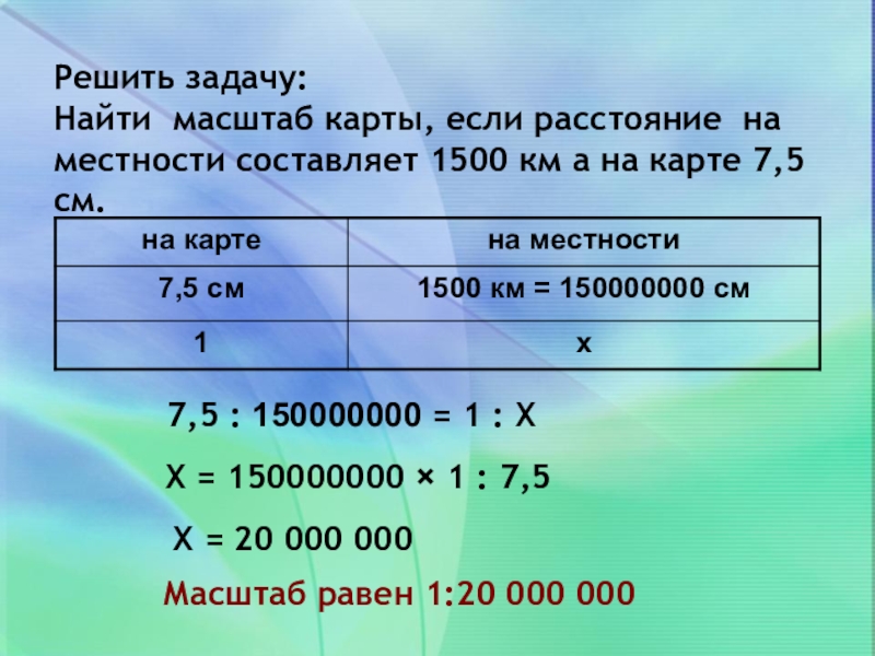в 1 см – 150 км