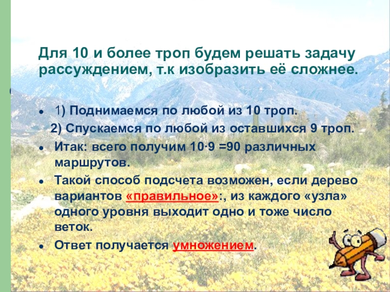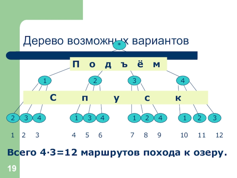 Такой способ подсчета возможен, если дерево вариантов «правильное»:, из каждого «узла» одного уровня выходит одно и тоже число веток.