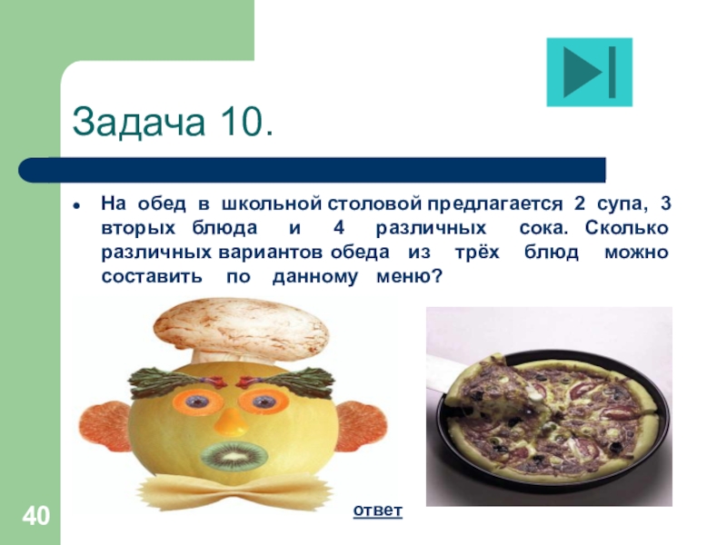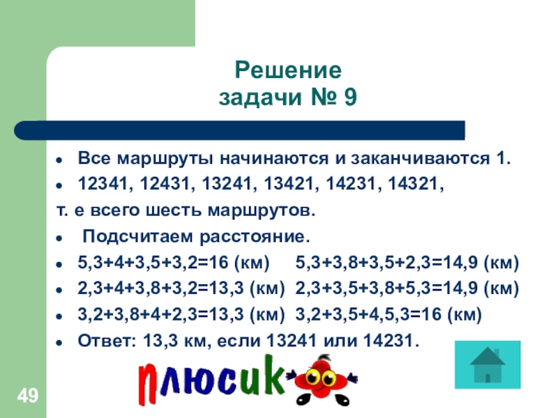 Итак: всего получим 10∙9 =90 различных маршрутов.