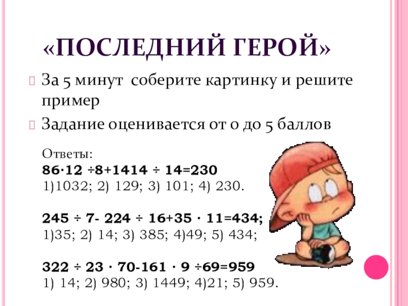 1) 14; 2) 980; 3) 1449; 4)21; 5) 959.