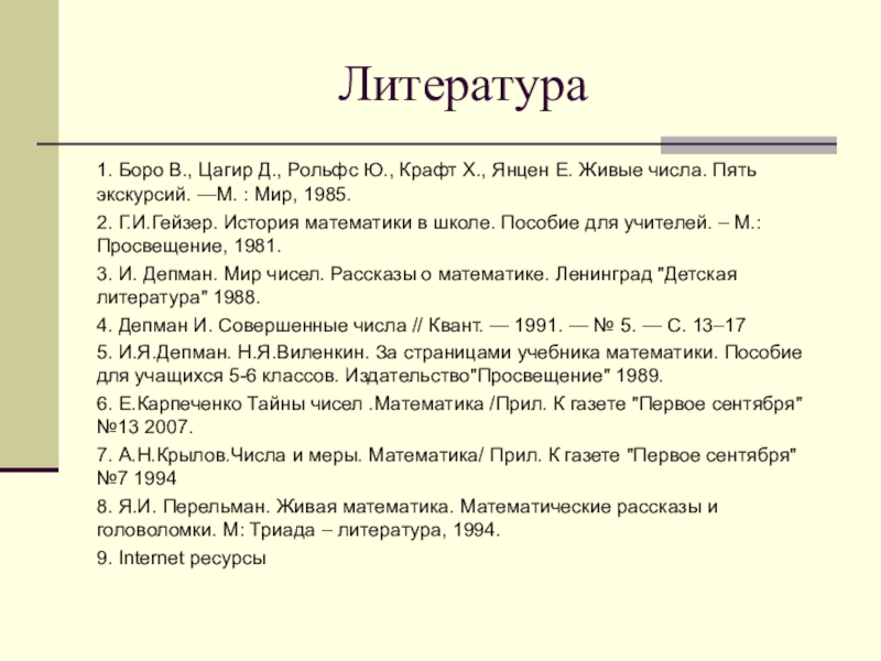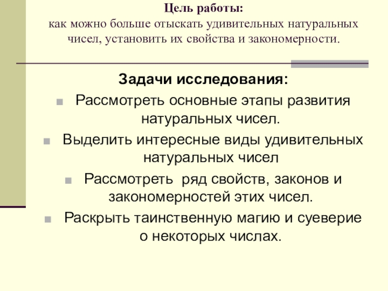 Рассмотреть ряд свойств, законов и закономерностей этих чисел.