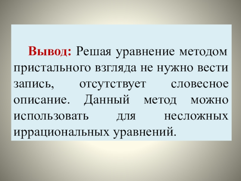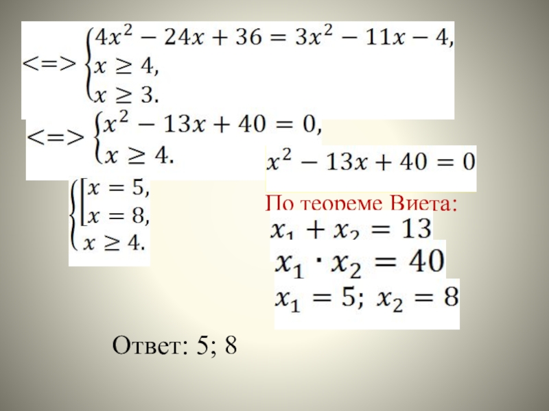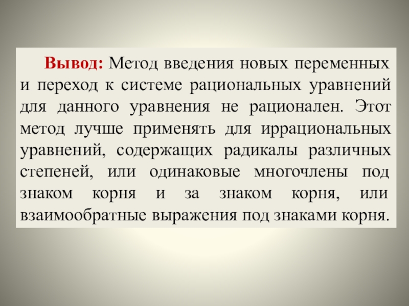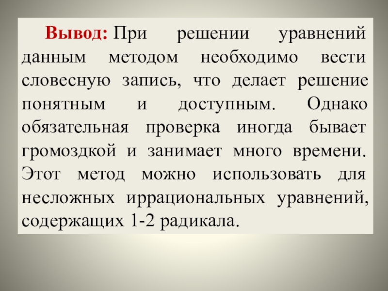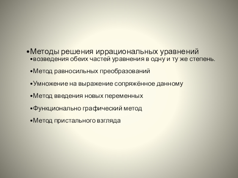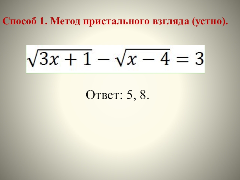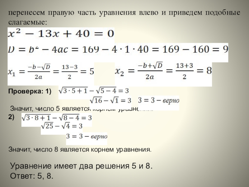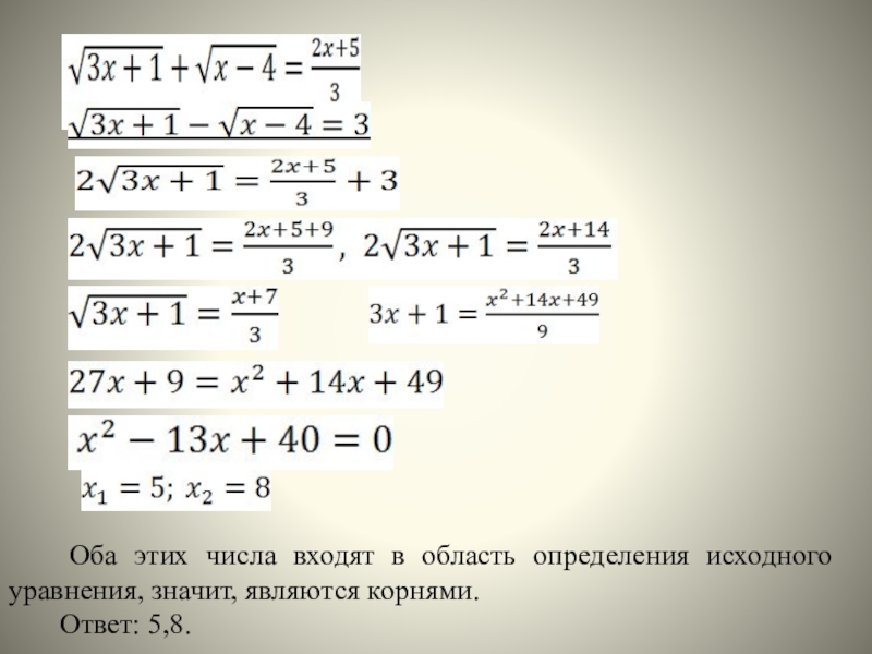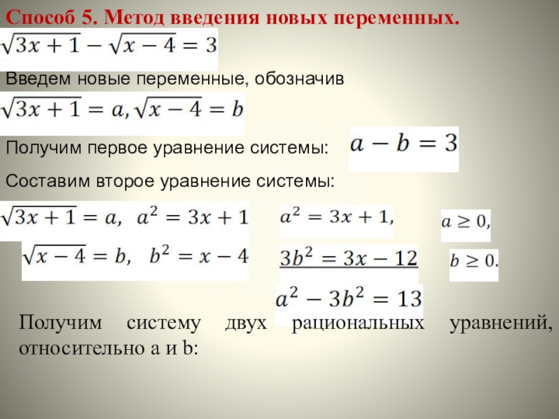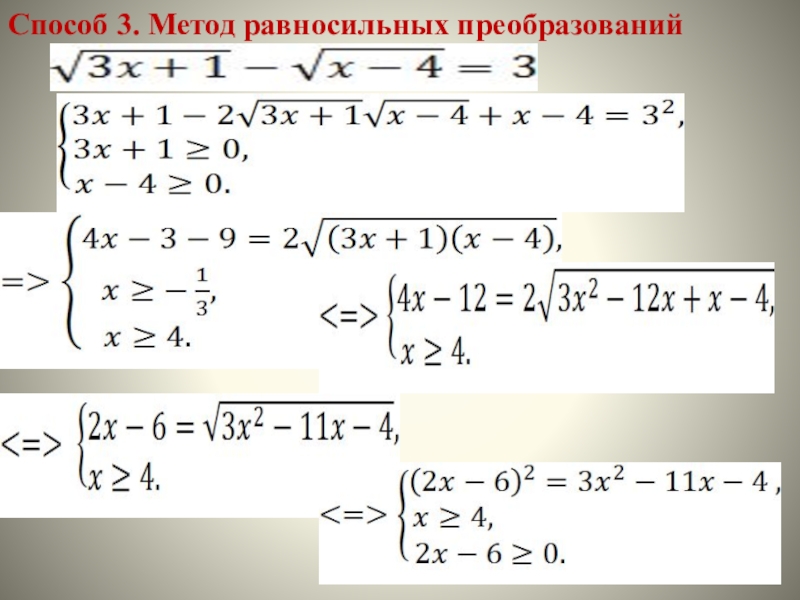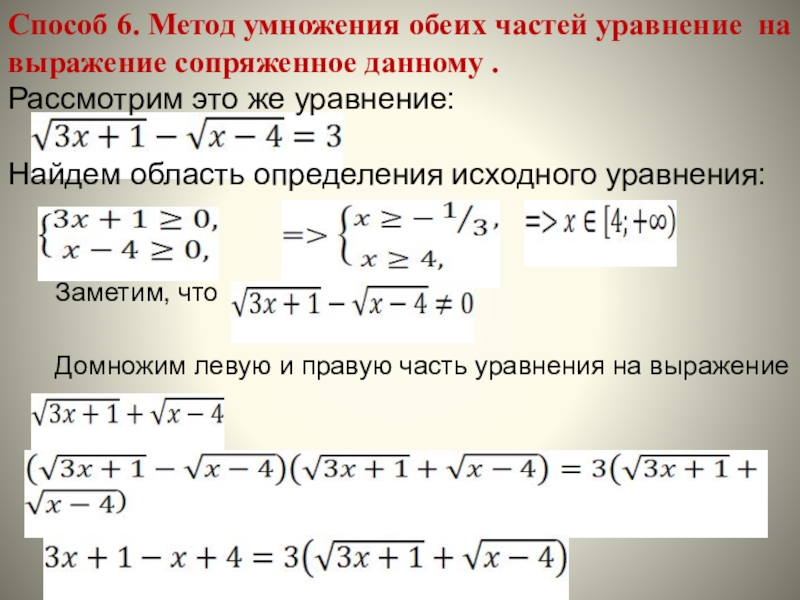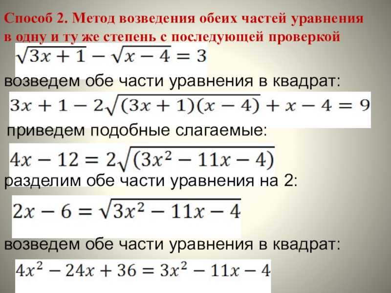 Задачи: Показать, что иррациональные уравнения можно решить различными способами.