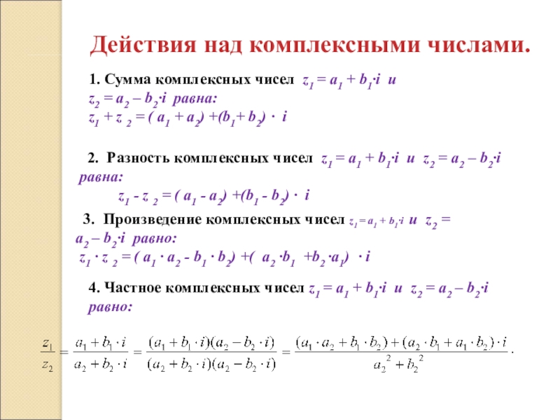 z1 · z 2 = ( а1 · а2 - b1 · b2) +( а2 ·b1 +b2 ·а1) · i