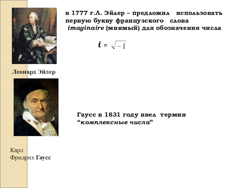 В 1637 году французским математиком и философом Р. Декартом было введено название «мнимые числа»