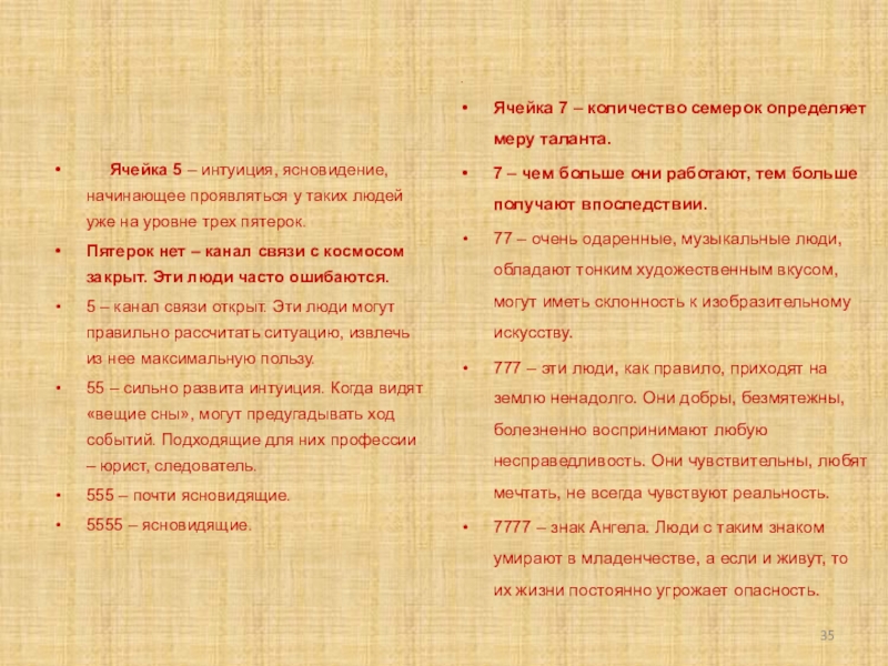 Слайд 35 Ячейка 5 – интуиция, ясновидение, начинающее проявляться у таких