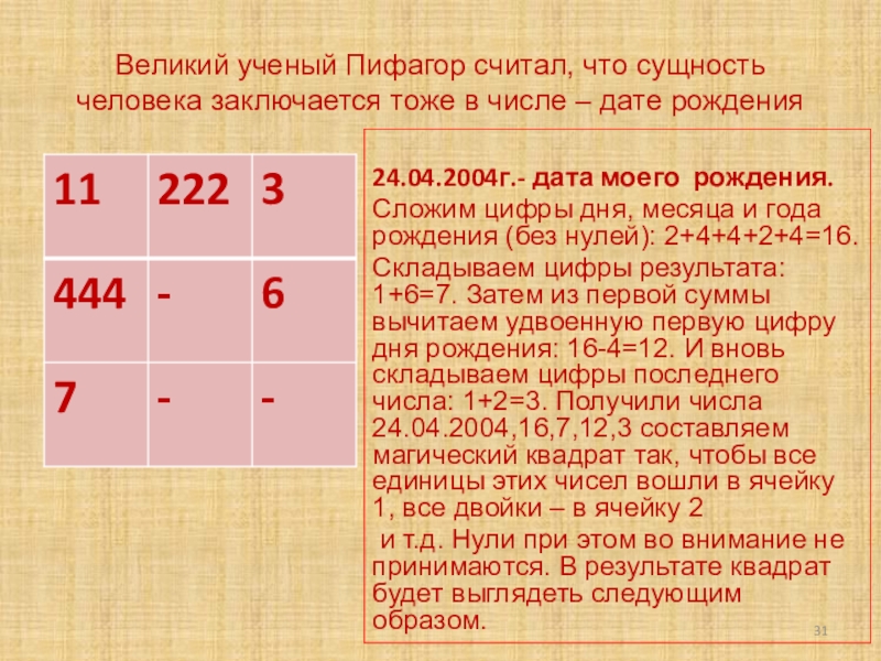 Слайд 31Великий ученый Пифагор считал, что сущность человека заключается тоже в числе