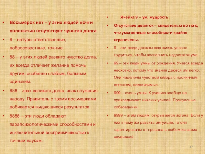 Слайд 37Восьмерок нет – у этих людей почти полностью отсутствует чувство долга.