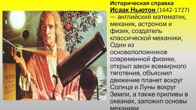 Слайд 8Историческая справка Исаак Ньютон (1642-1727) — английский математик, механик, астроном и физик,