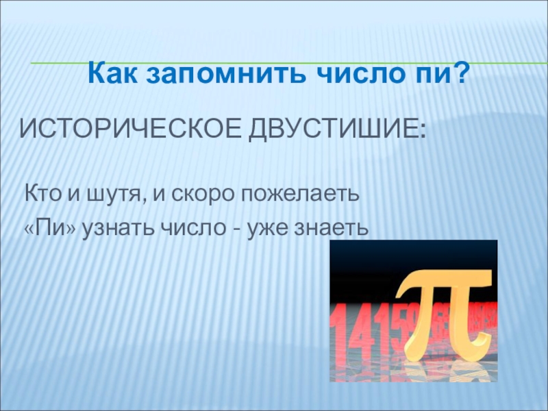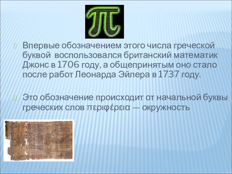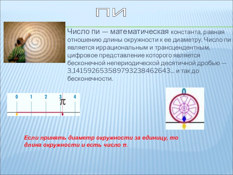 Если принять диаметр окружности за единицу, то длина окружности и есть число π.