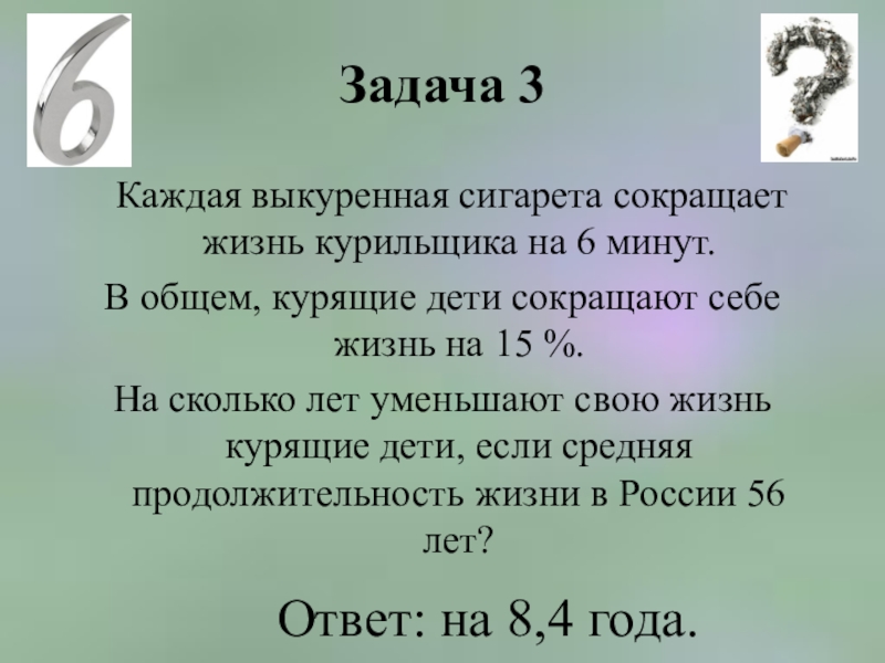 На сколько лет уменьшают свою жизнь курящие дети, если средняя продолжительность жизни в России 56 лет?