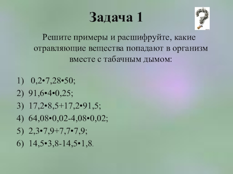 Решите примеры и расшифруйте, какие отравляющие вещества попадают в