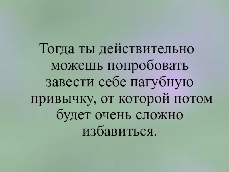 Тогда ты действительно можешь попробовать завести себе пагубную привычку,