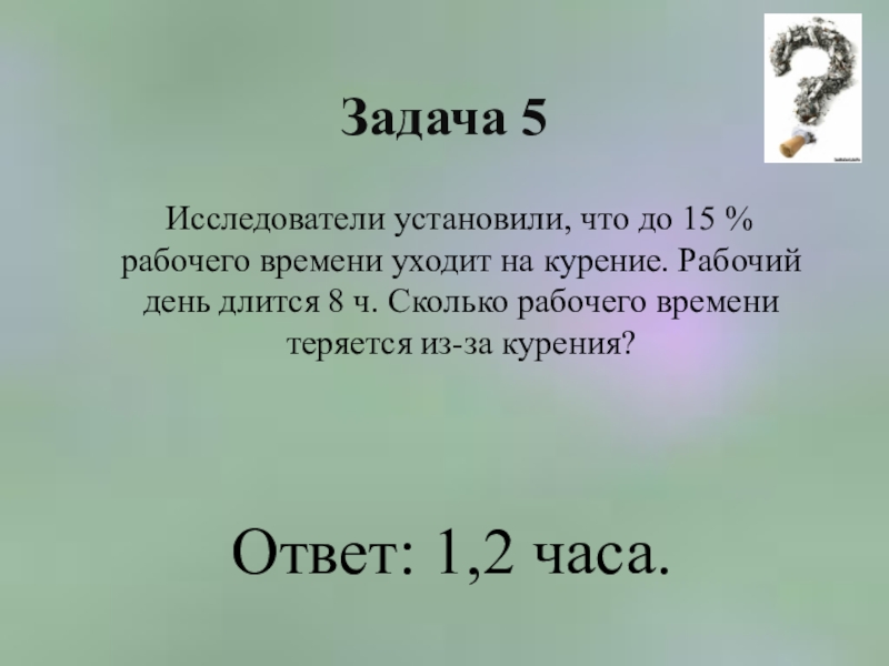 времени уходит на курение. Рабочий день длится 8 ч. Сколько рабочего времени теряется из-за курения?
