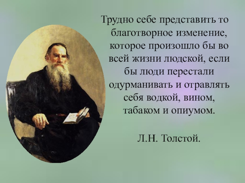 Слайд 3Трудно себе представить то благотворное изменение, которое произошло бы во всей