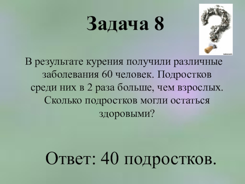 среди них в 2 раза больше, чем взрослых. Сколько подростков могли остаться здоровыми?