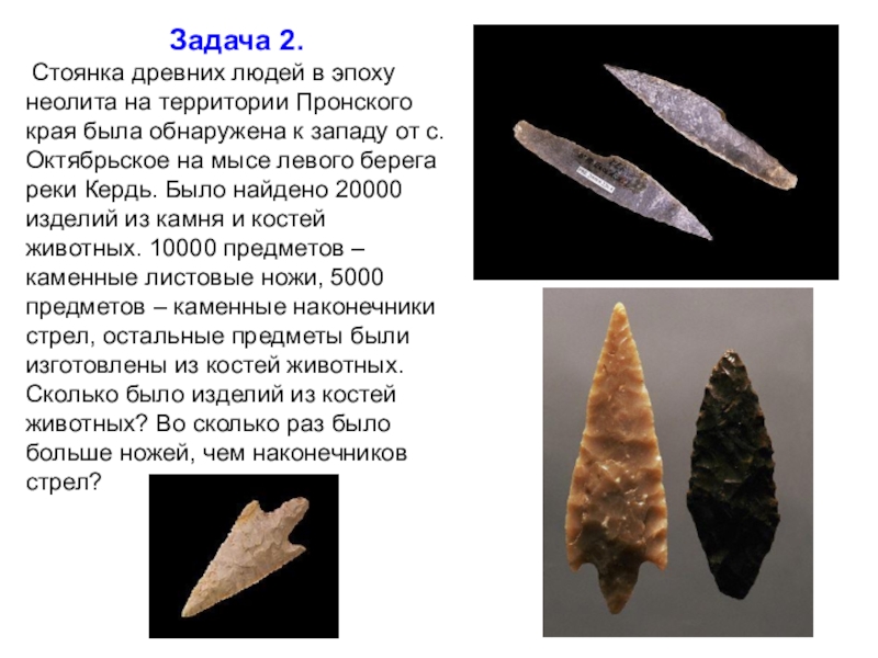 Задача 2. Стоянка древних людей в эпоху неолита на территории Пронского края была обнаружена к западу от
