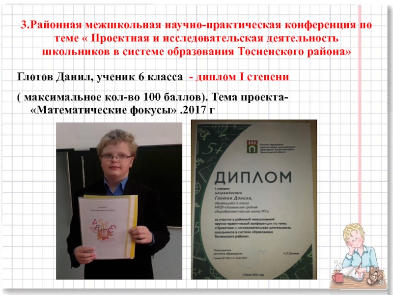 ( максимальное кол-во 100 баллов). Тема проекта- «Математические фокусы» .2017 г