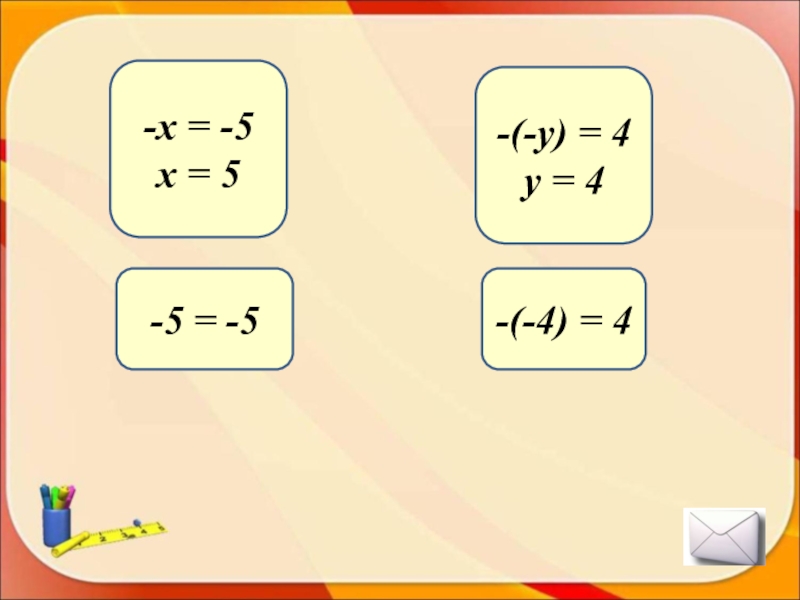 а) –х = -11 б) –y = 25 в) –(- x)=3,2