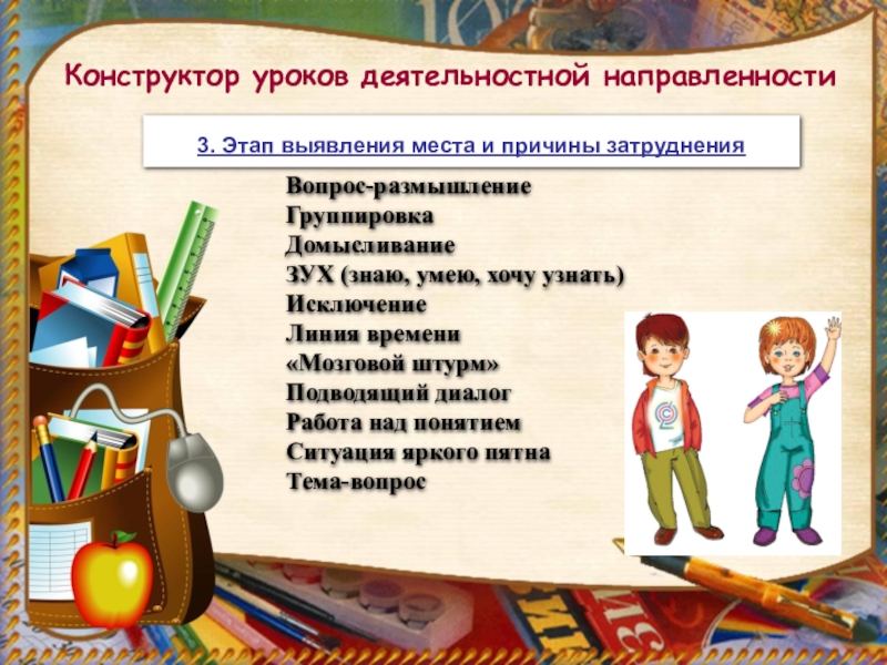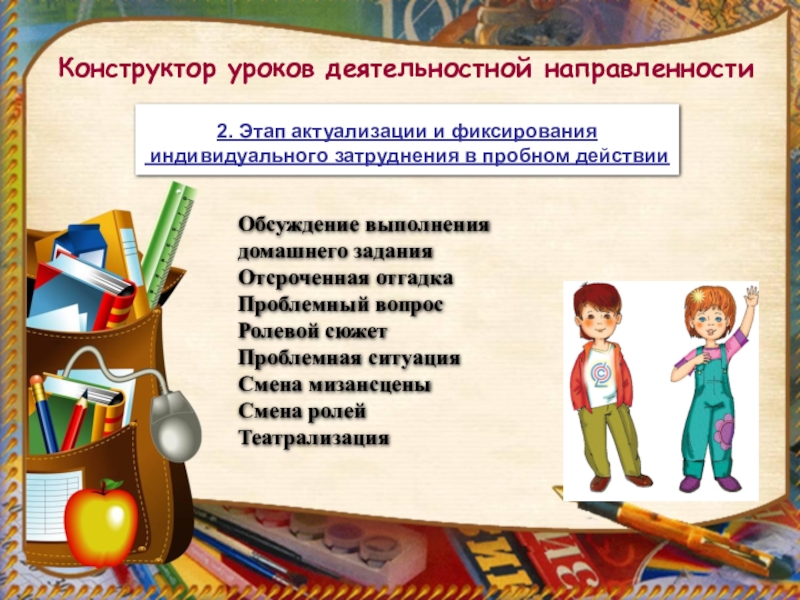 Этап актуализации и фиксирования индивидуального затруднения в пробном учебном действии.