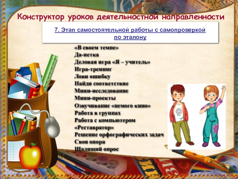 7. Этап самостоятельной работы с самопроверкой по эталону.