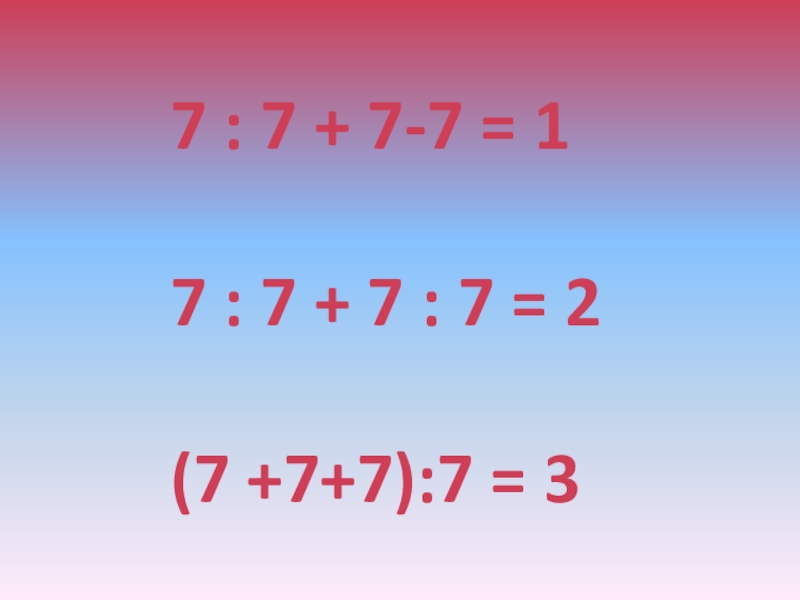 7 : 7 + 7-7 = 17 : 7 + 7 : 7 = 2(7 +7+7):7 =