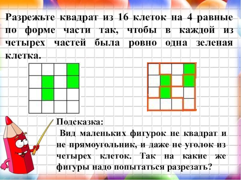 сами клетки) на такие части, из которых можно было бы сложить квадрат.