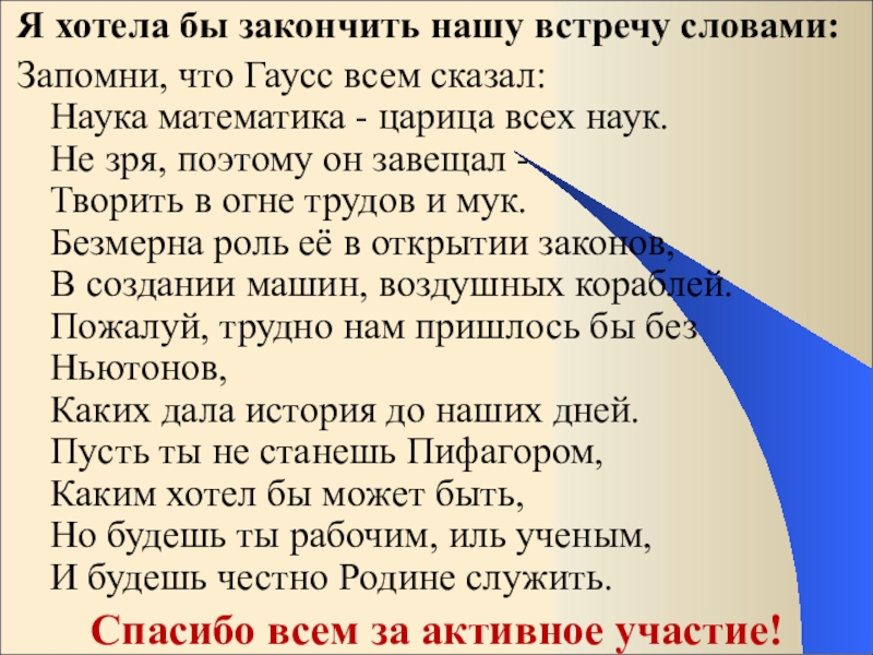 Слайд 31Я хотела бы закончить нашу встречу словами: