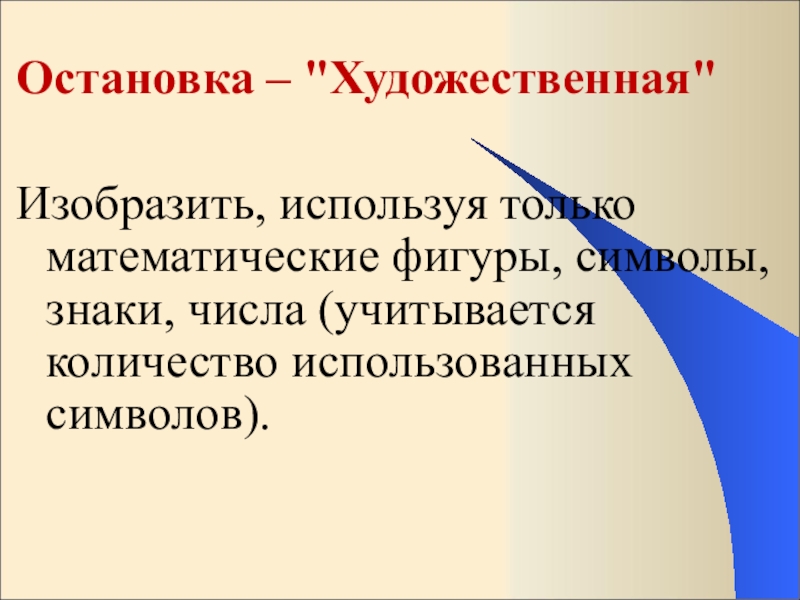 Изобразить, используя только математические фигуры, символы, знаки, числа (учитывается